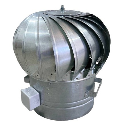 Устройство представляет собой ротационный дефлектор, оснащенный электродвигателем для передачи вращения вала активной головки и системой автоматического управления. Материал: оцинкованная сталь. Температура эксплуатации дефлектора от -40 °С до +50 °С.